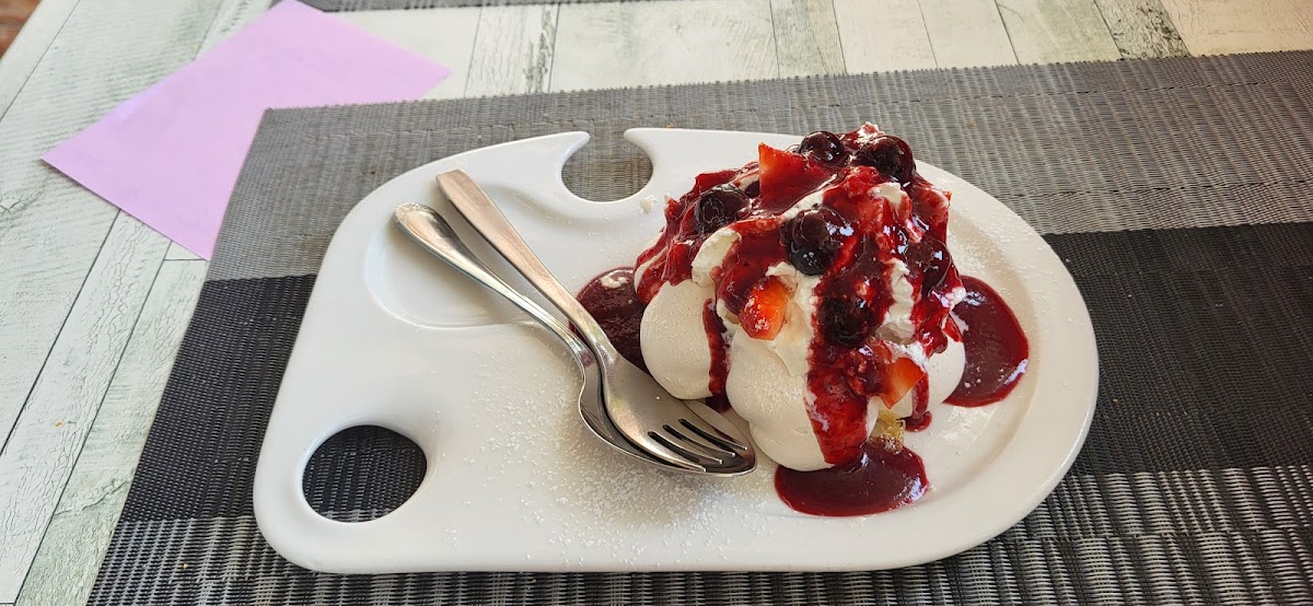 Such a talented, bubbly, friendly and lovely couple own and run this lively and colourful restaurant! Fresh, delicious 3 course lunches with HOME MADE Bread (baked every morning!) as well as a drink for 13.50... The chef is super talented and his sauces, pastries, bread are all...simply wonderful! It's a big secret for all of us locals.. it gets very full..so please keep it to yourselves!!!!