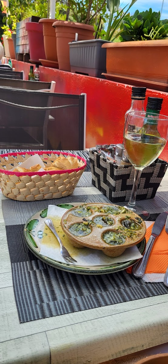 Good French food on a budget in Elviria (Marbella East). Always fresh, always well prepared and nicely presented and service with a smile! Many choices of home made desserts. Big glass of wine included with the menu at 16.50 euro, 3 course meal! I paid 4 extra euros for French escargots! Terrasse is cool with its colourful frescas! Owner takes care of you as if you were family!